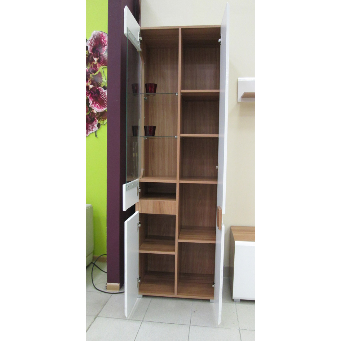 Двухстворчатый шкаф витрина для посуды в гостиную Леонардо МН-026-01/1 белый левый