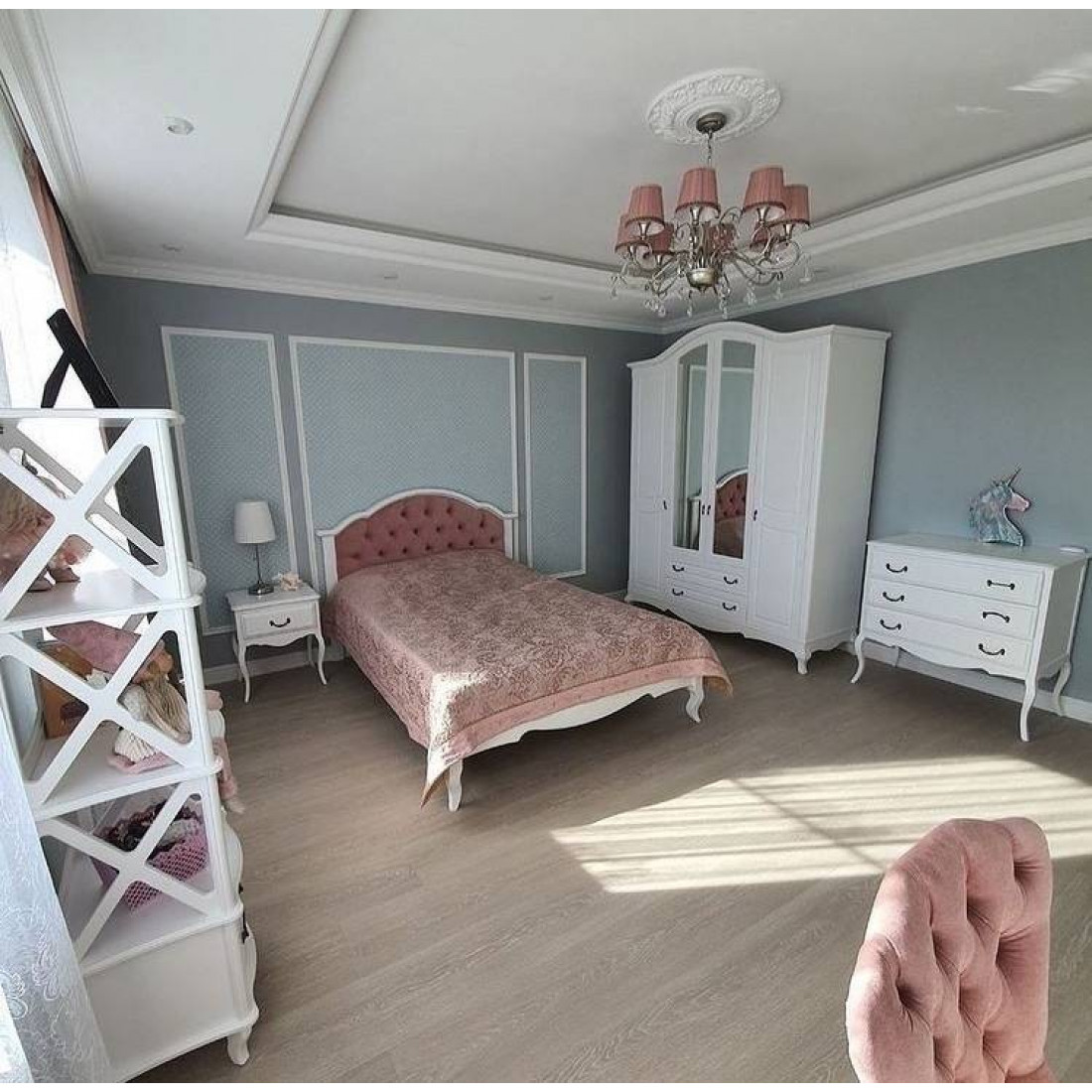 Кровать оснащена ортопедическим основанием для матраса — ламелями.
