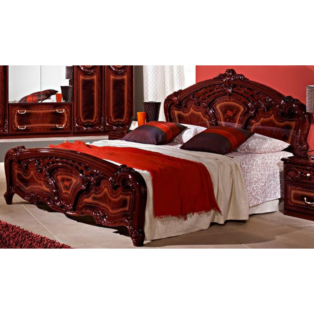 Двуспальная кровать Роза (могано) от Российской фабрики "ДИА мебель". Выполнена в элегантном классическом стиле. Такая большая и комфортная кровать с ортопедическим основанием, поможет Вам расслабиться и насладиться хорошим отдыхом после рабочего дня. Она выполнена в цвете могано с глянцевым покрытием, и золотистым орнаментом на фасадах. Обращает внимание на себя декоративная фрезеровка изголовья кровати. Такая модель двуспальной кровати, с легкостью обратит внимание на прекрасное чувство стиля своего владельца и классический дизайн его спальни.