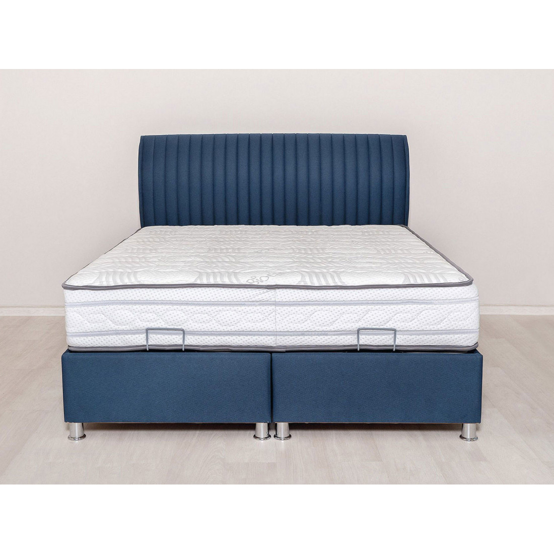 Элегантная база и спинка с декоративной отстрочкой с обивкой из мебельной ткани. Данная модель идет в комплекте с вкладным, жестким кроватным основанием, оснащенным двухсторонним газоподъемным механизмом с двухсторонним фиксатором. Подъемный механизм, которым оснащено основание кровати, добавляет комфорта в использовании модели, облегчая доступ к вместительному ящику для белья.