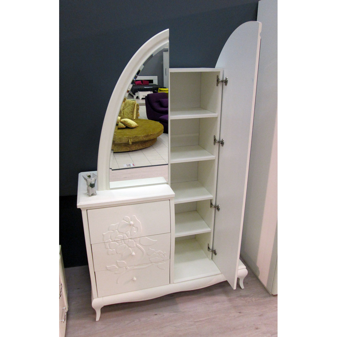 - Открытие зеркальной дверки происходит по принципу «маятника».