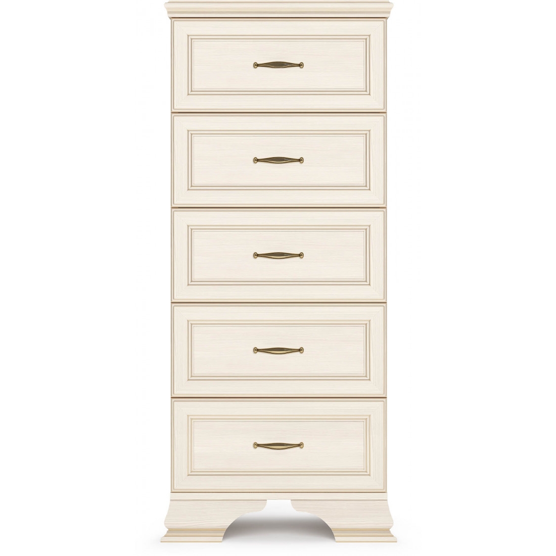 Коллекция производится в текстуре «бодега белый» с эффектом золотого патинирования. Облик «Сиены» дополняют рамочные фасады и карниз в классическом стиле, а также эффектные опоры из МДФ. Мебель комплектуются металлической лицевой фурнитурой премиум-класса в цвете «старая бронза» и надежной крепежной фурнитурой.