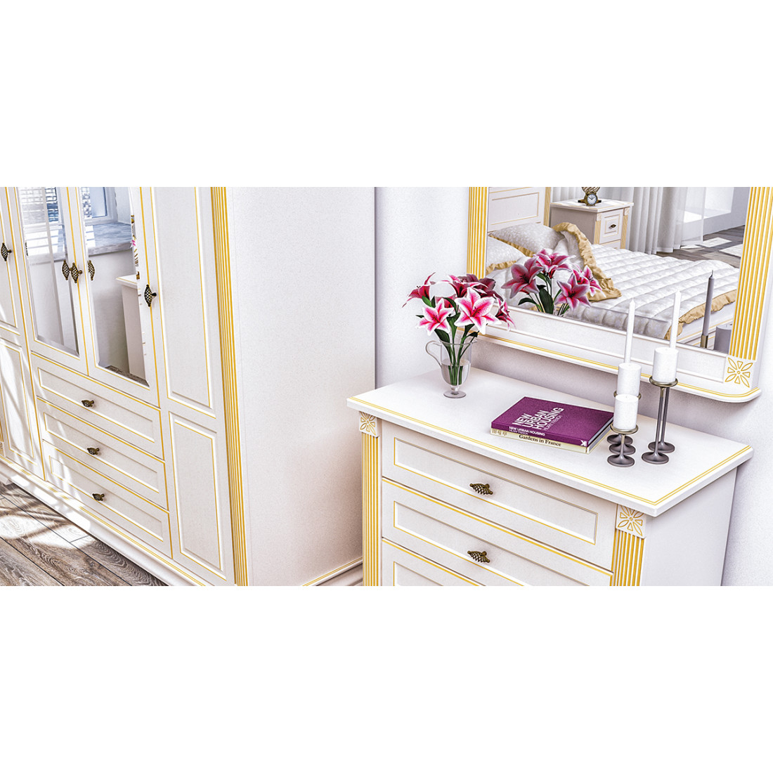Прямоугольное настенное зеркало в спальню МН-222-08 новой серии Афина от Мебель-Неман выполнено в цвете "крем с золотой патиной". Основой служит МДФ.
