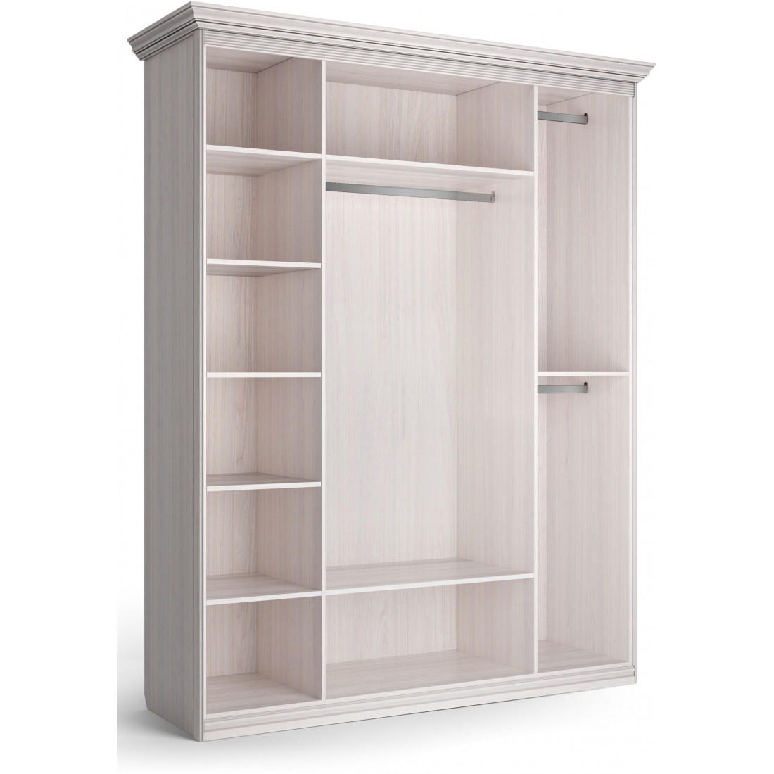 Шкаф 3-х дверный с глухой и зеркальной дверью Неаполь Ясень анкор светлый (патина "серебро")