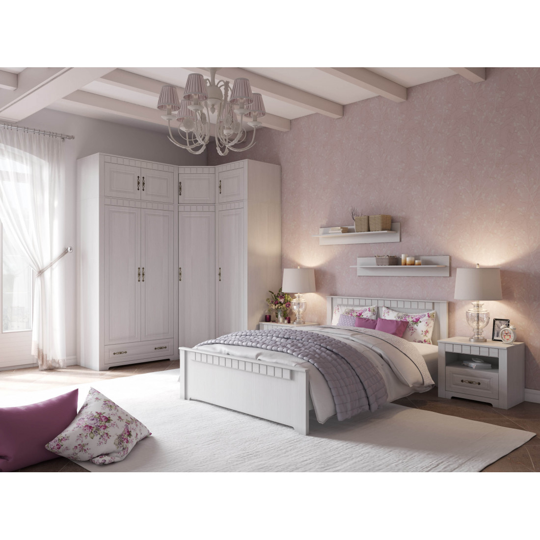 Спальня Прованс от Мебельград - это шарм сельской метности, домашнего уюта, нежные тона и продуманная организация пространства. Изящные декоративные элементы добавят очарования всему интерьеру, внося нотки классики в ваш декор. Располагайте даже объемные спальные принадлежности с удобством во вместительных отделах шкафа и комода.