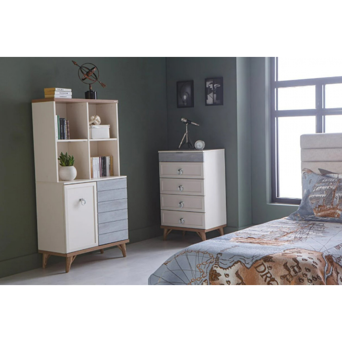 Стеллаж с полками дополнит молодежную комнату Мавенна