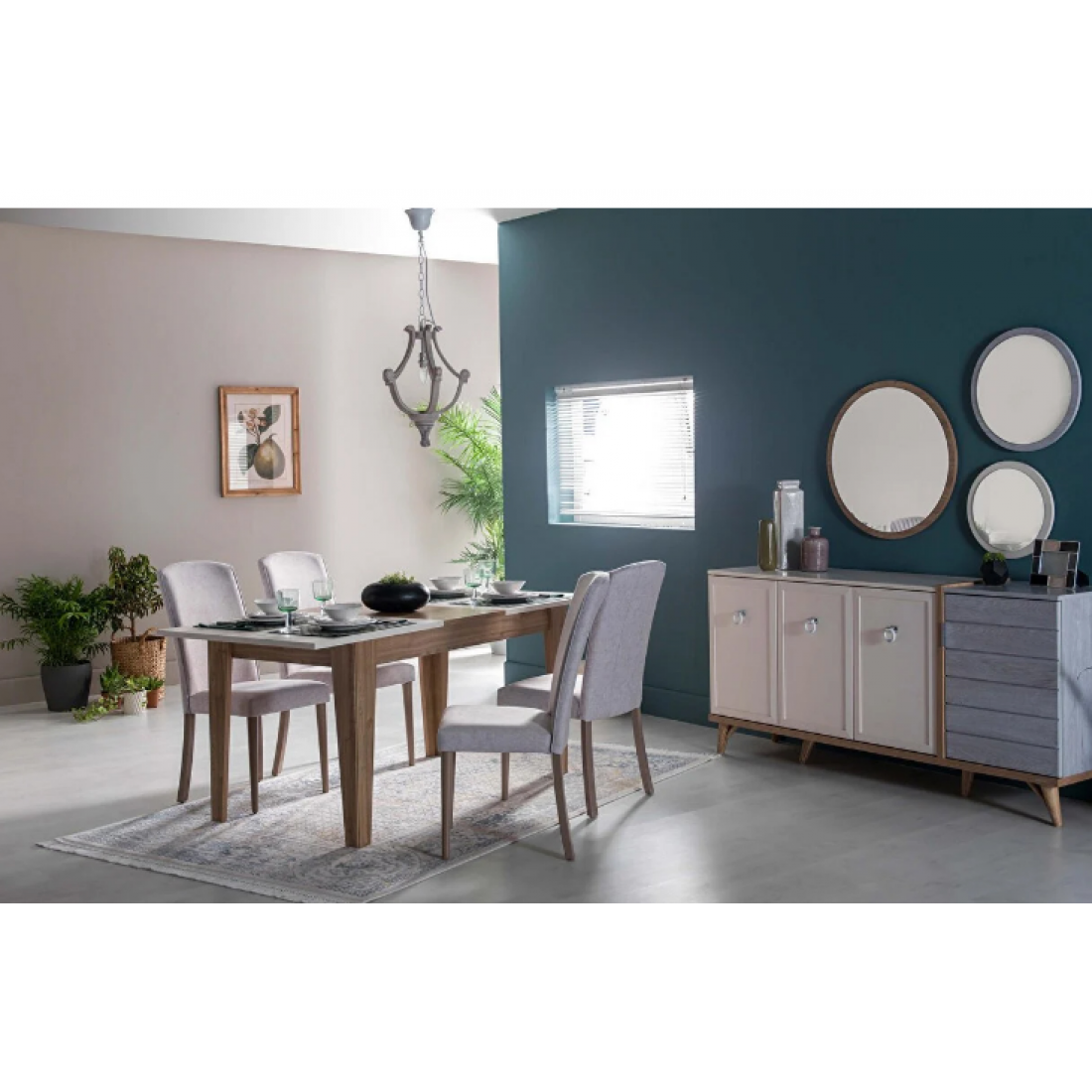 Функциональный раскладной стол Montego от Bellona. Дополнительная вставка и ножки цвета орех. Подойдет для гостиной и кухни. Стол имеет размер 180х80х77 в разложенном виде, что позволит разместить за ним от 4 до 6 человек..