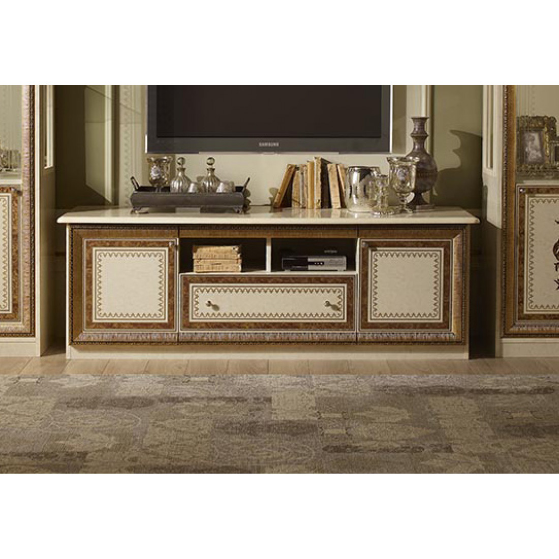 Тумба для ТВ Анита (бежевый глянец) от Российской фабрики «ДИА мебель» Выполнена в цвете бежевый глянец с отделкой золотых фасадов. Классический стиль придают интерьеру неповторимую уникальность и роскошь. Изгибающиеся линии придают легкость и воздушность гостиной либо столовой. Коллекция "Анита" придаст вашему дому экстравагантность и принесет свежие нотки.