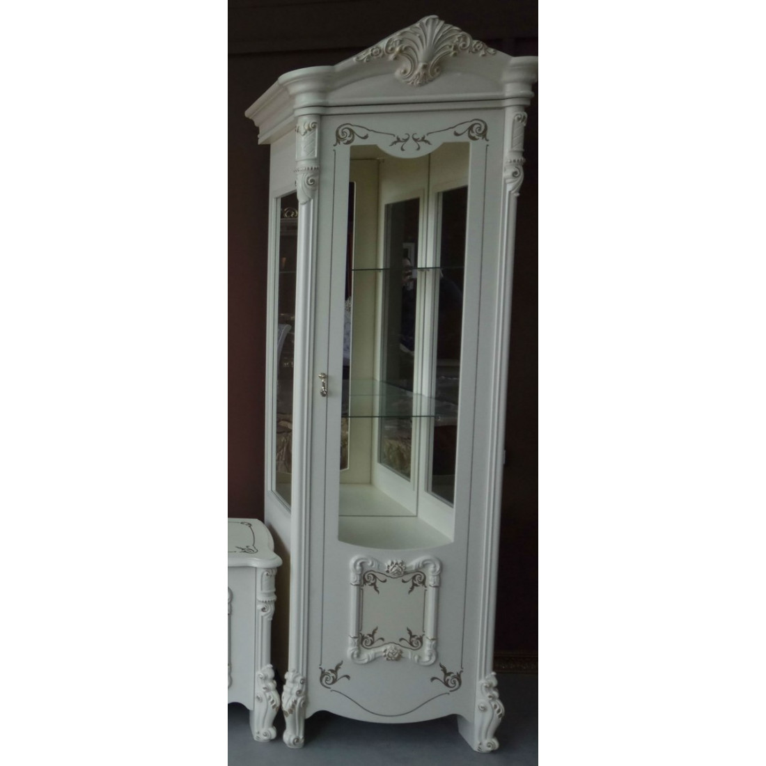 Шкаф-витрина однодверная Рафаэлла (беж)​ от Российской фабрики «ДИА мебель», выполнен в элегантном бежевом цвете.